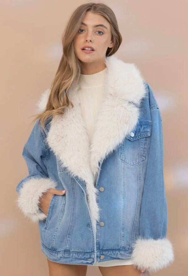 Fur is in. We love this denim and fur jacket that is sure to get tons of compliments, babe.